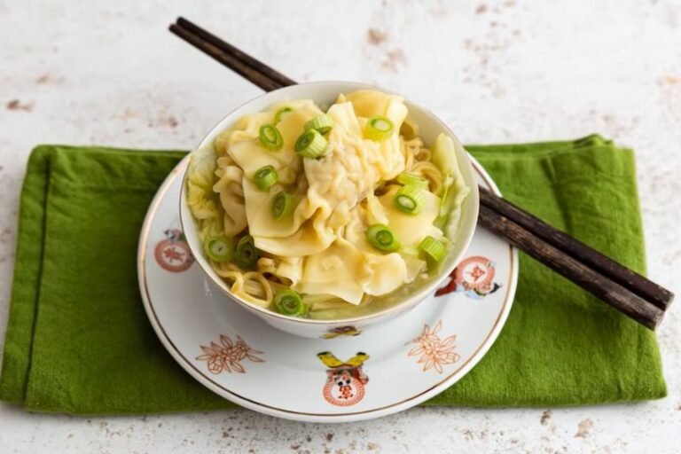 This wonton noodle soup is a comforting classic that combines a light, fragrant chicken broth with springy egg noodles and delicate pork and prawn wontons.
