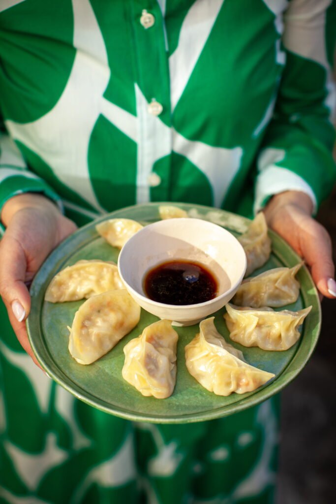 Cooking them is pure magic. Eva uses the classic pan-fry and steam method to get that golden, crispy base while keeping the inside tender and juicy. Served with a simple dipping sauce, these Japanese chicken and vegetable gyozas are the kind of dish that disappears fast once they hit the table.