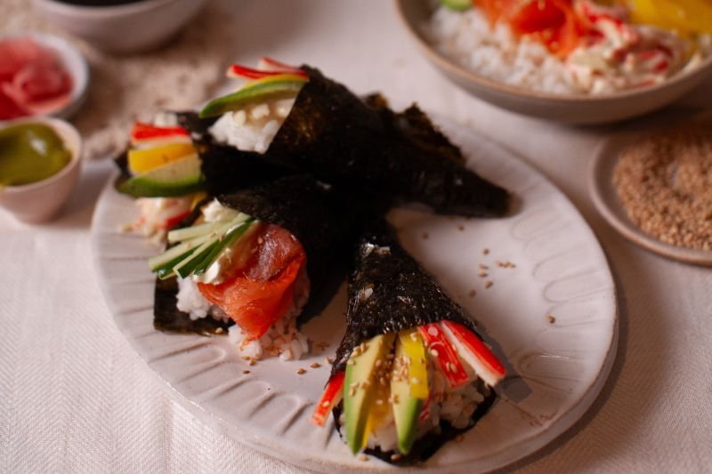 Temaki sushi was always our family’s “weekend sushi.” Instead of spending hours carefully shaping nigiri, we would gather around the table with bowls of rice and fillings and roll our own hand rolls. It was relaxed, interactive, and perfect for sharing.
